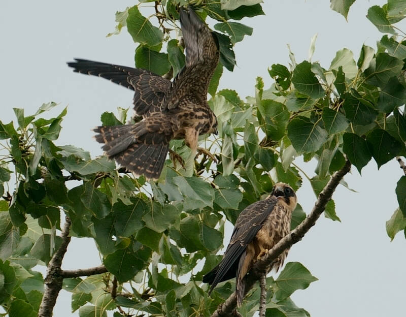 26 Augustus : In Voorschoten geen Boomvalken. In mijn woonwijk zijn ze wel present en ondanks de druilerige omstandigheden geven