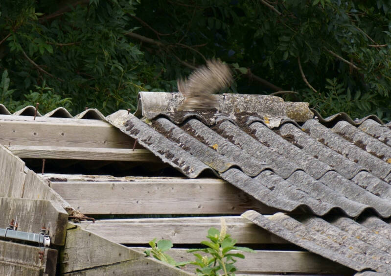 Tapuit op het dak van een Vogelhut genaamd 'De Tureluur':