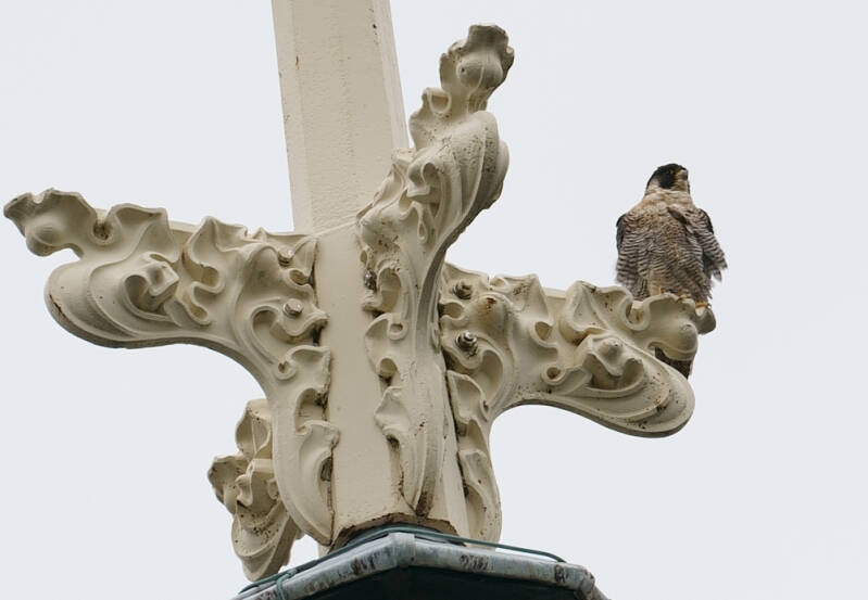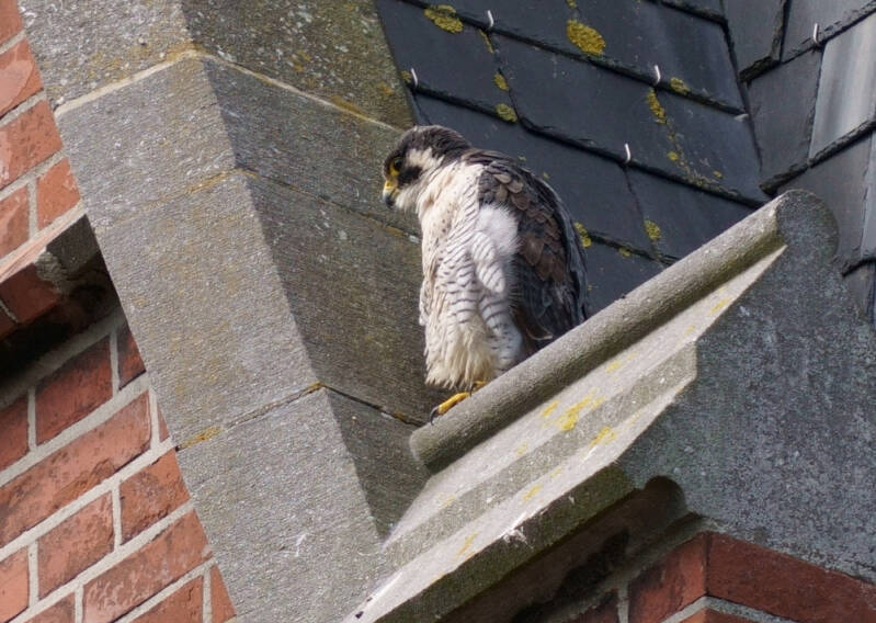 Een verrassing was visite in de vorm van de jonge Slechtvalk....Aan beide poten geringd, helaas niet afleesbaar.