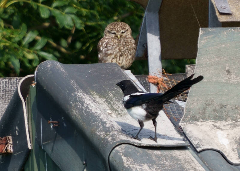Geen foto's, maar de Ekster verdween in de opening en wordt hier nog even nagekeken door het mini Uiltje :