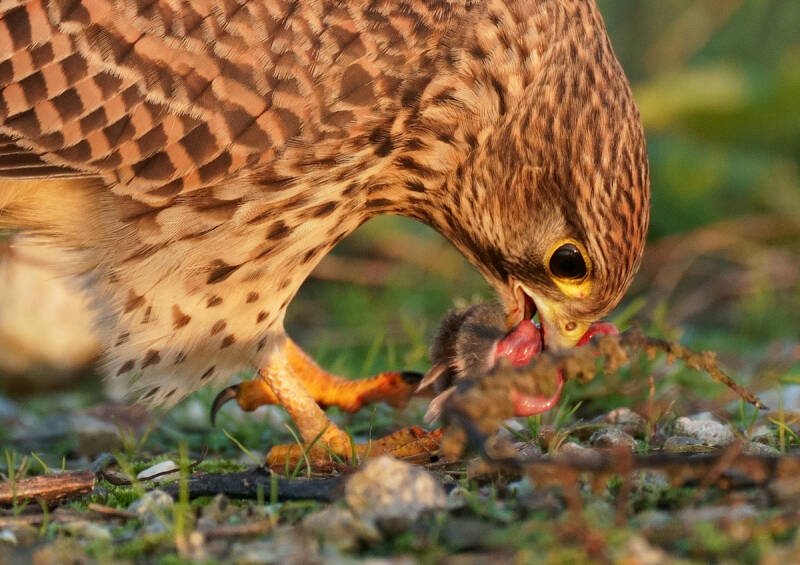 Op de korte video is te zien hoe ze de rest van de muis verslind en de snavel schoonmaakt :