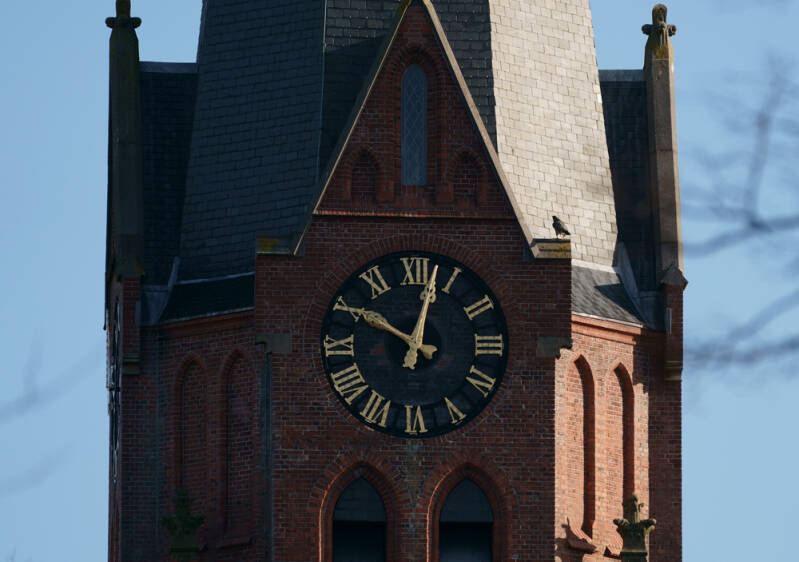 Op de terugweg via Voorschoten een Valk in de top van de Laurentiuskerk :