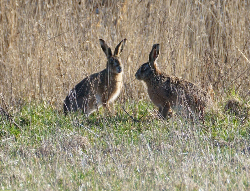 Hazen.....De plaatselijke Boer beschermt ze door geen Jagers toe te laten.