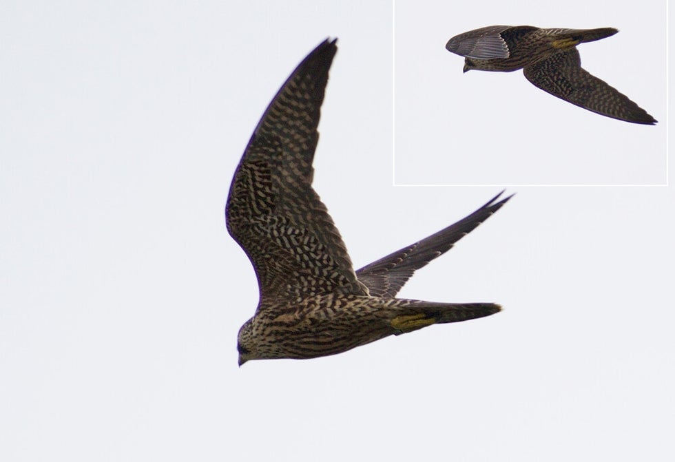 Heel kort verschijnt deze razendsnelle Boomvalk boven de Plas die een onbekend insect heeft gevangen :