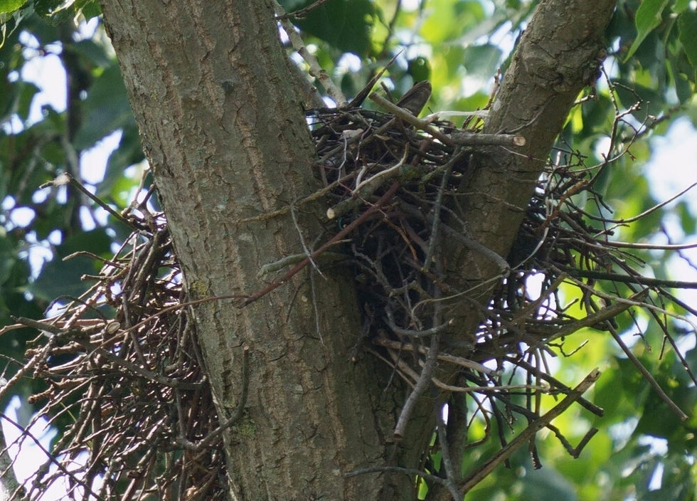 -Het oude nest van deze Kraai is in gebruik bij een Boomvalk. Het was daar erg stil, hopelijk gaat alles goed.