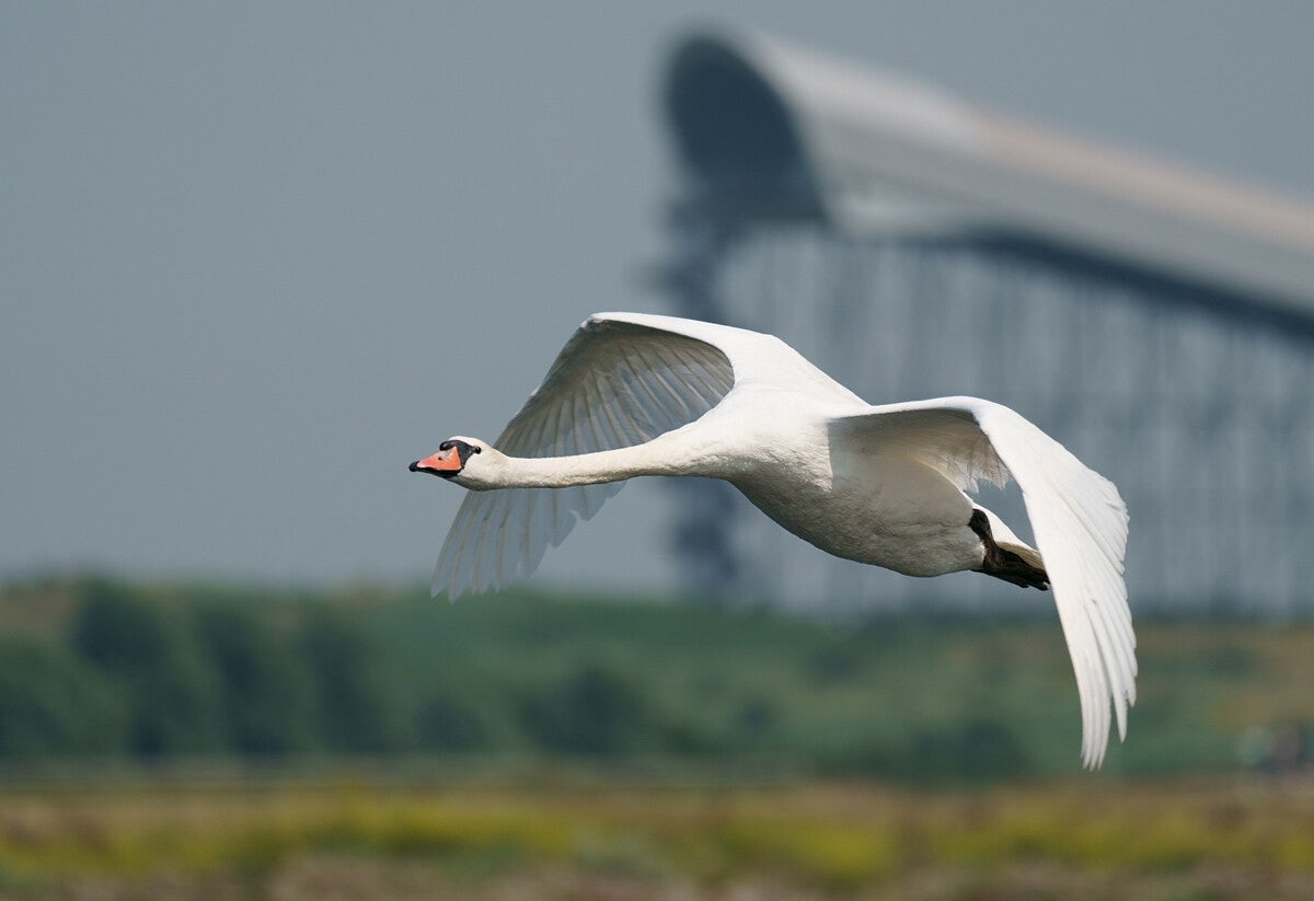 Knobbelzwanen tegen een dreigende lucht die niet veel goeds voorspelt...)