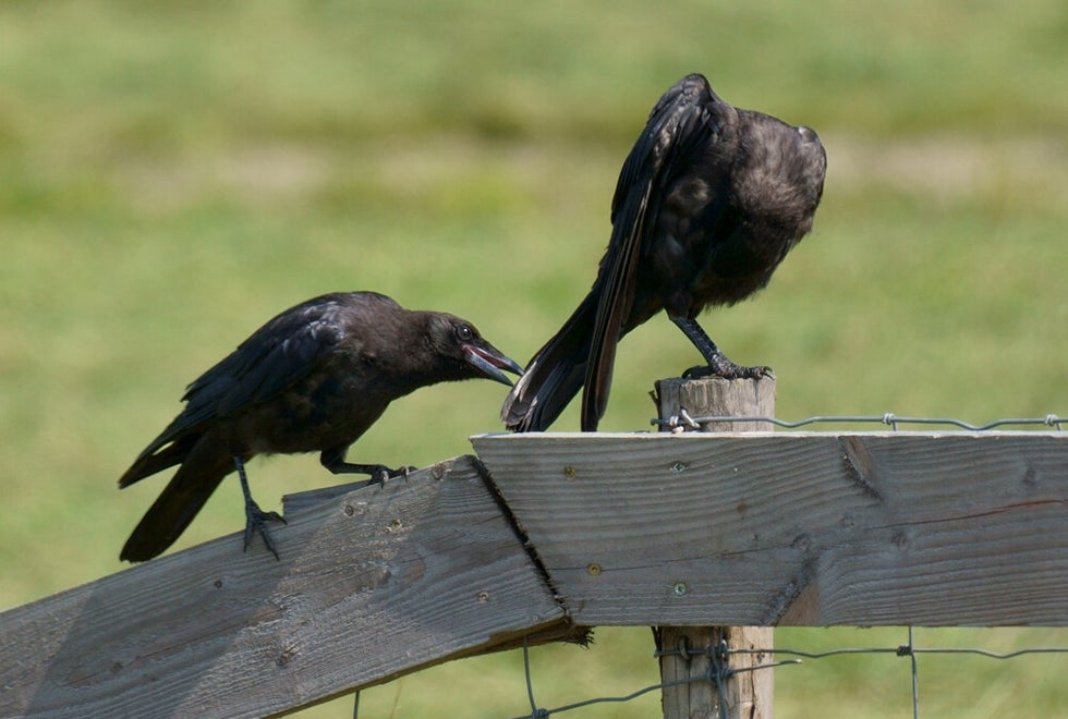 De jonge Kraaien blijven meer dan een jaar herkenbaar aan de roze binnendelen snavel :