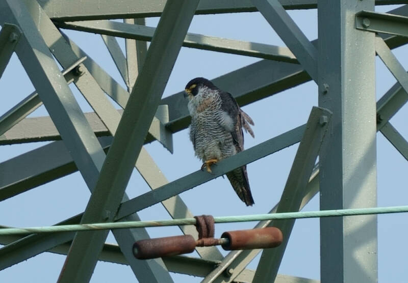 Vandaag voor het eerst na het mislukte broedseizoen de Nehervalken weer eens op mast 10 aangetroffen.