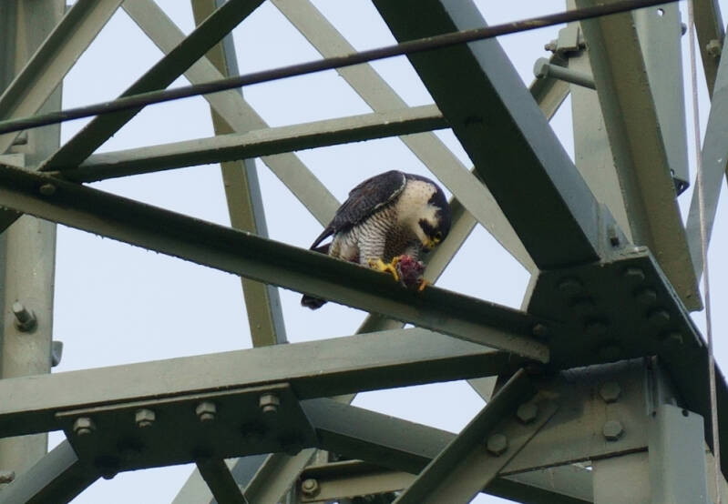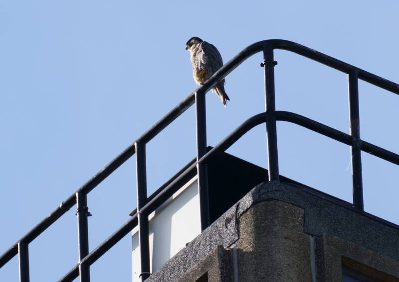 Ook vandaag op de terugweg het vrouwtje Slechtvalk weer op de Nehertoren aangetroffen. (Pietje is weer niet thuis)