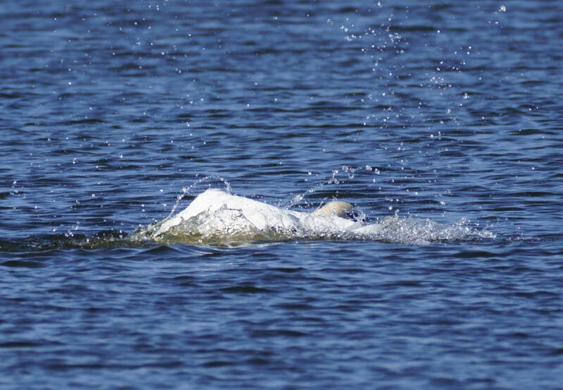 Ze stuift over het water en verdwijnt zonder iets te hebben gevangen..: