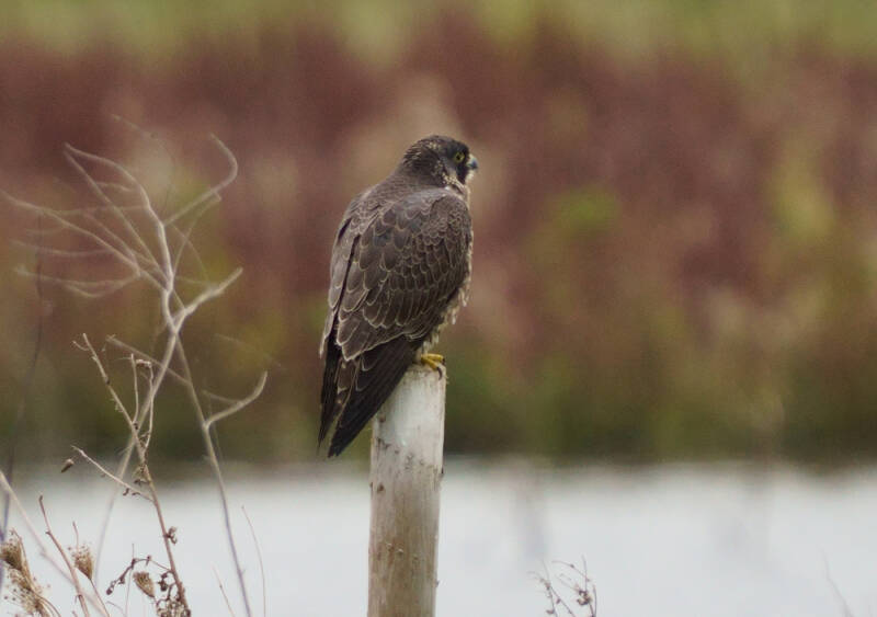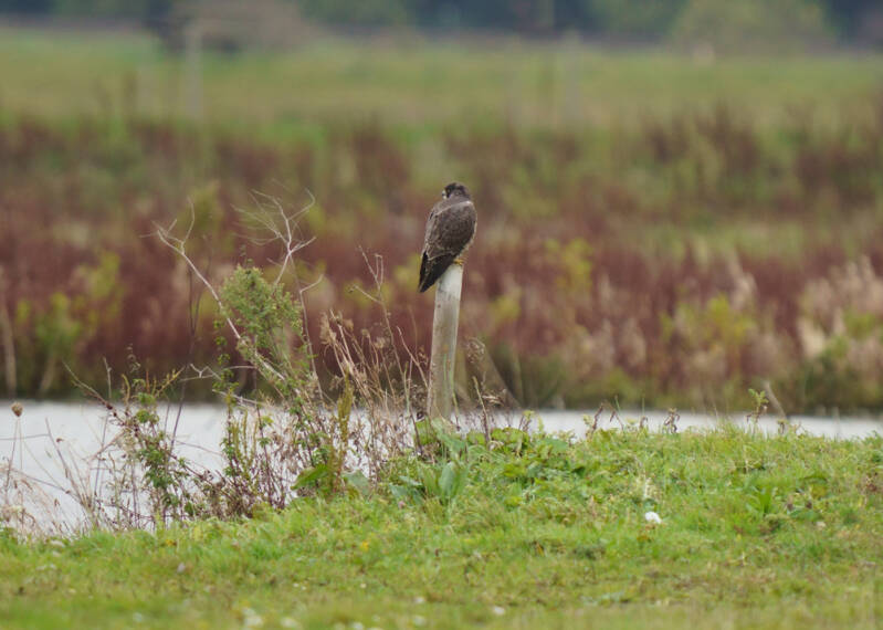 Een verrassing is een jonge Slechtvalk in het Zuidelijk deel van het gebied!