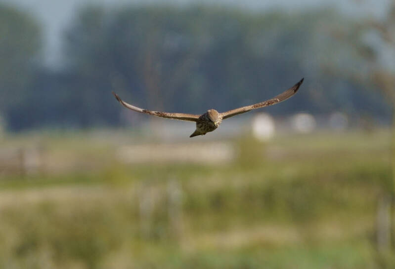 Als ik in het Noordelijk deel van het gebied arriveer, scheurt plotseling de jonge Slechtvalk weer voorbij..: