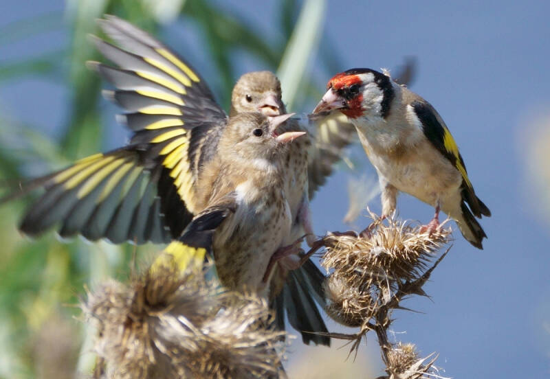 -Ze bedelen ook regelmatig bij andere soorten, zoals passerende Duiven of een toevallig neergestreken Vlaamse Gaai.