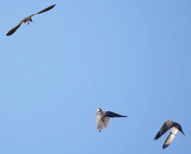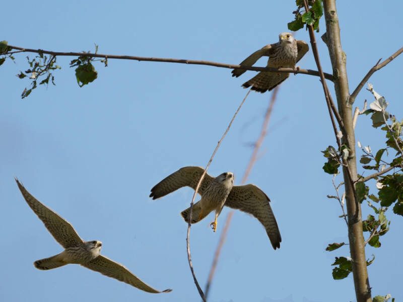 Op de terugweg weer langs de Boomvalken. De familie was vooral op grote hoogte actief :