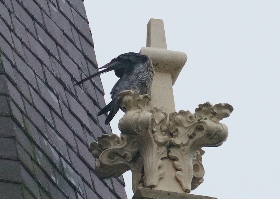 Plotseling springt ze af en vliegt dan totaal 3 rondjes om de Toren en dat is toch wel verdacht..: