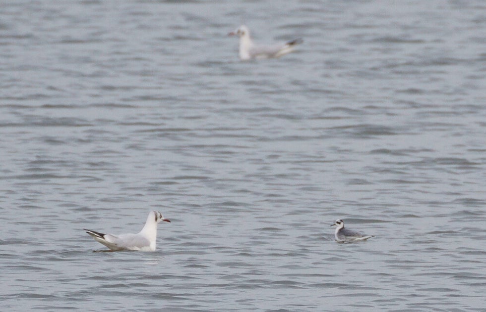 Net als de Rosse Franjepoot maakt de Kokmeeuw handig gebruik van de foeragerende Slobeenden :