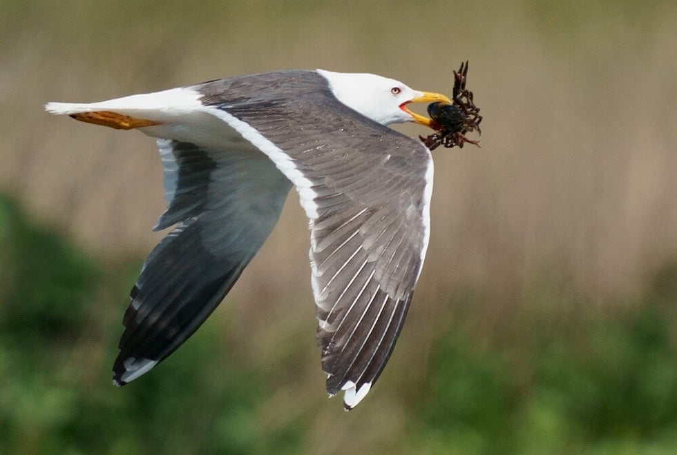 -Kieviet neemt het zekere voor het onzekere en verjaagd een Kleine Mantelmeeuw