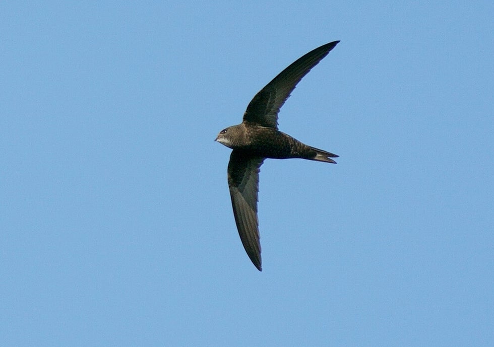 Gierzwaluwen op insectenjacht, de zeer harde wind schijnt geen enkele hinder voor ze te zijn :