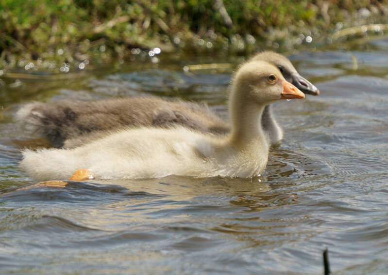 Als afsluiter een Grauwe Ganzenclub met één afwijkend jong. Vermoedelijk een leucist.