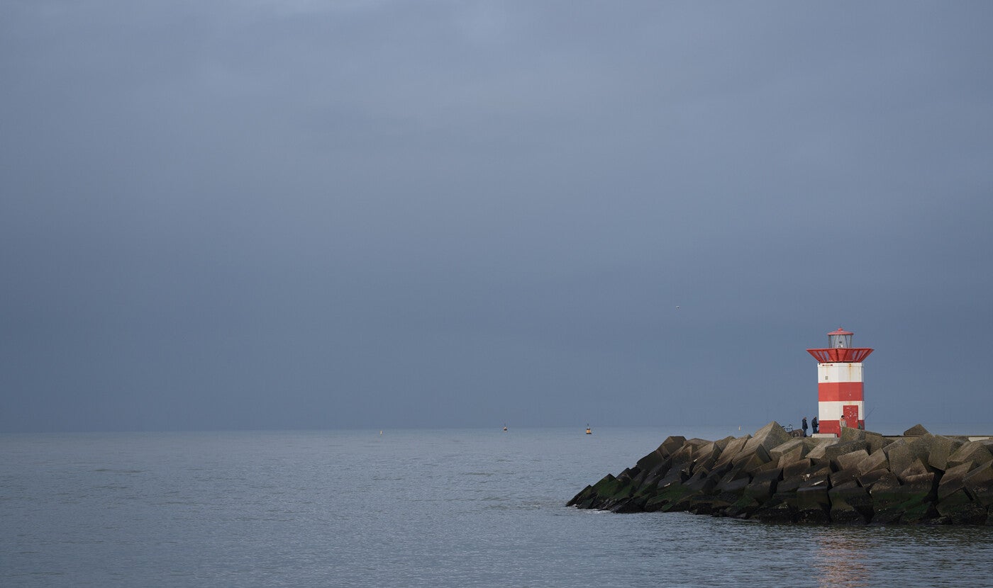 In de vroege ochtend is het op zee redelijk helder, op de achtergrond zijn echter alweer dreigende wolkenpartijen zichtbaar :