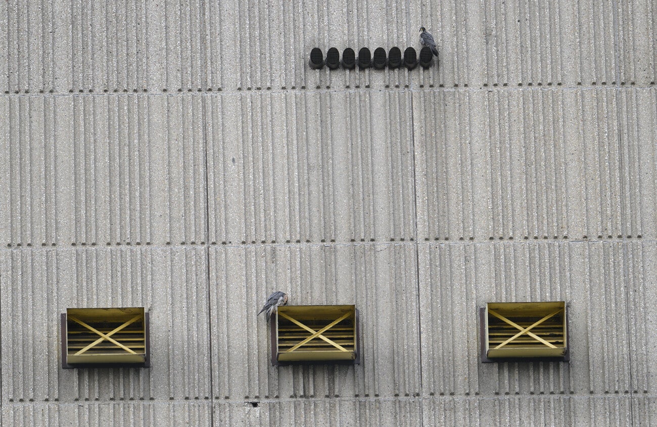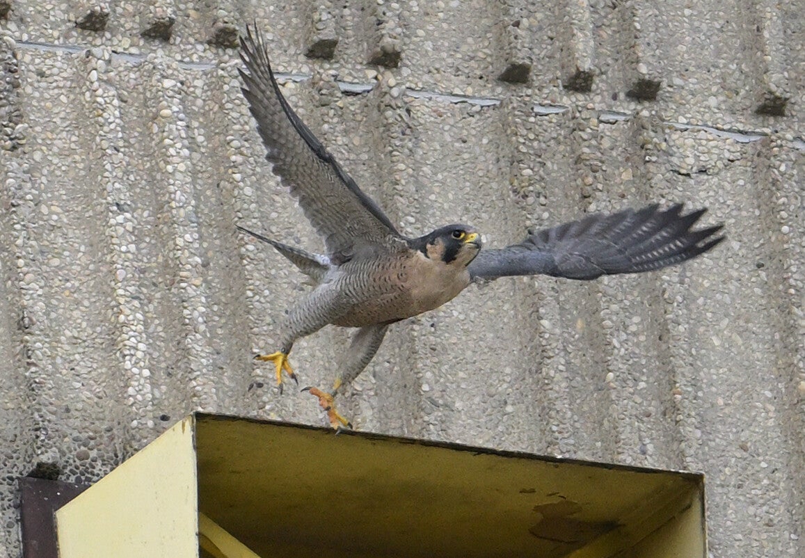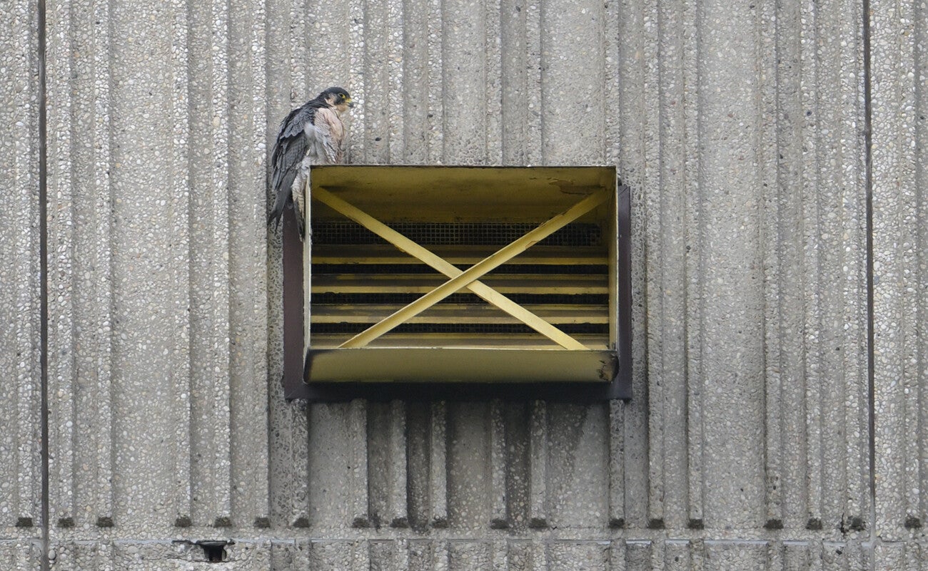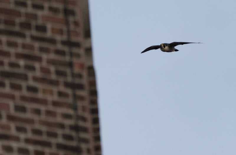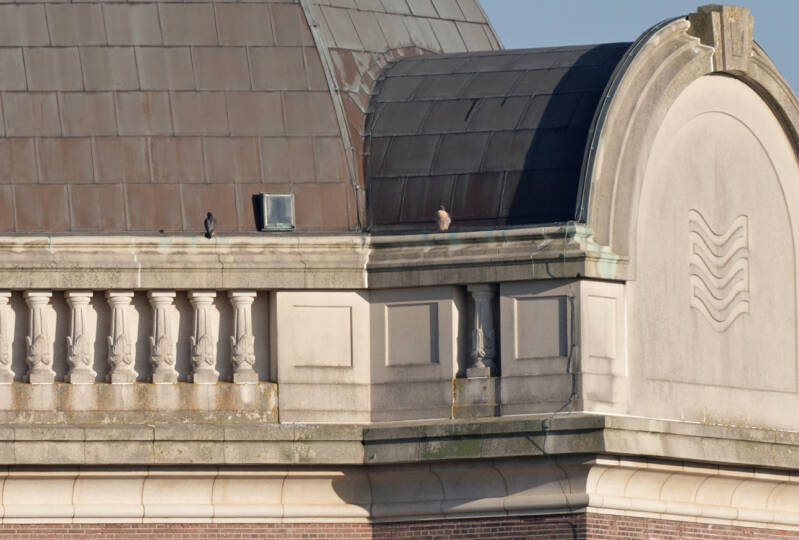 -Op vrijwel hetzelfde moment beginnen er werkzaamheden aan het plaatwerk naast de nestkast en de Valken vertrekken, en dat doe ik ook maar.
