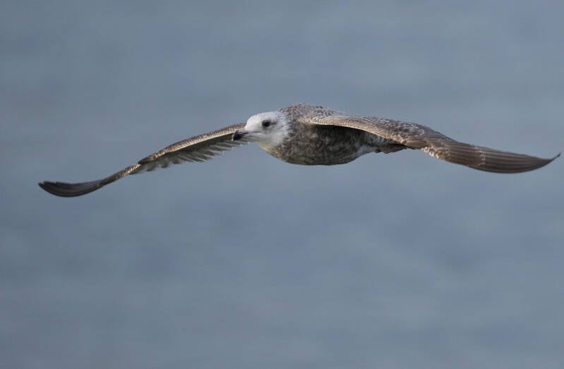 Een Kleine Mantelmeeuw, de meeste soortgenoten zitten al lang en breed in het Zuiden, er blijven altijd wel wat overwinteren :