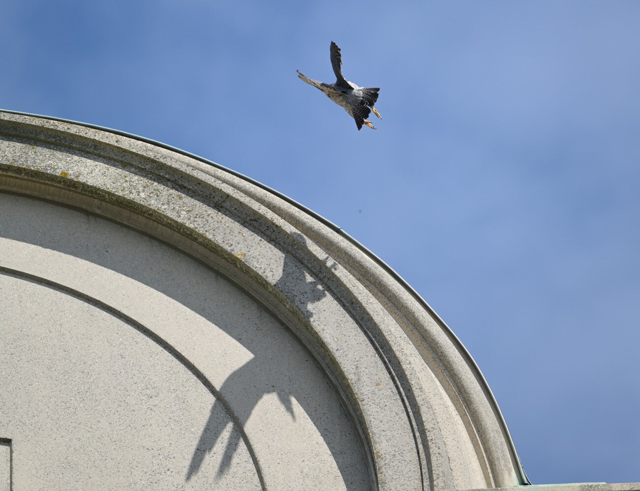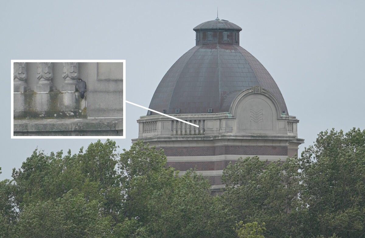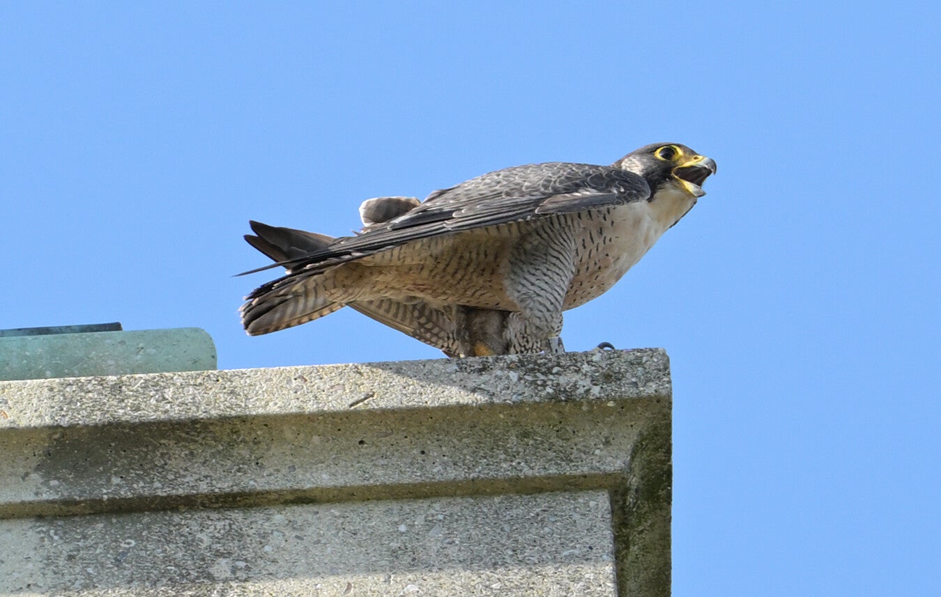 Vanaf de gevangenis is er een volwassen Valk zichtbaar op de Watertoren :
