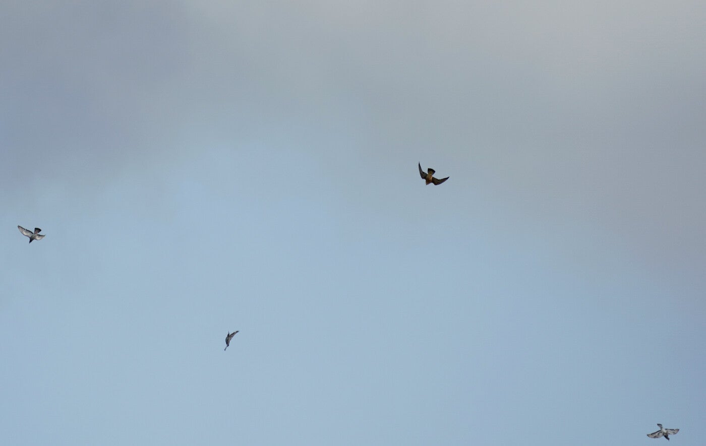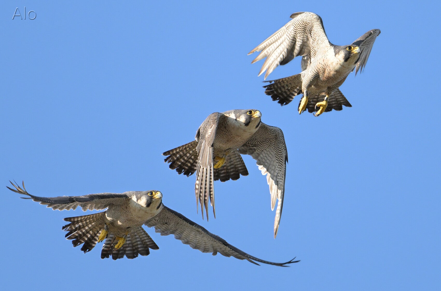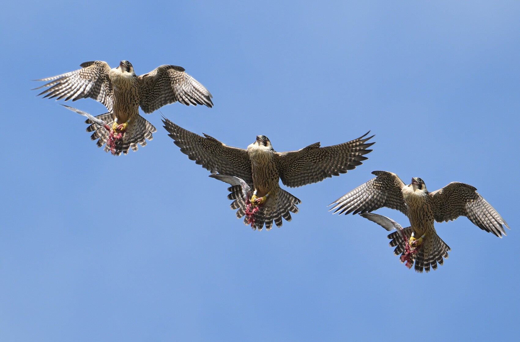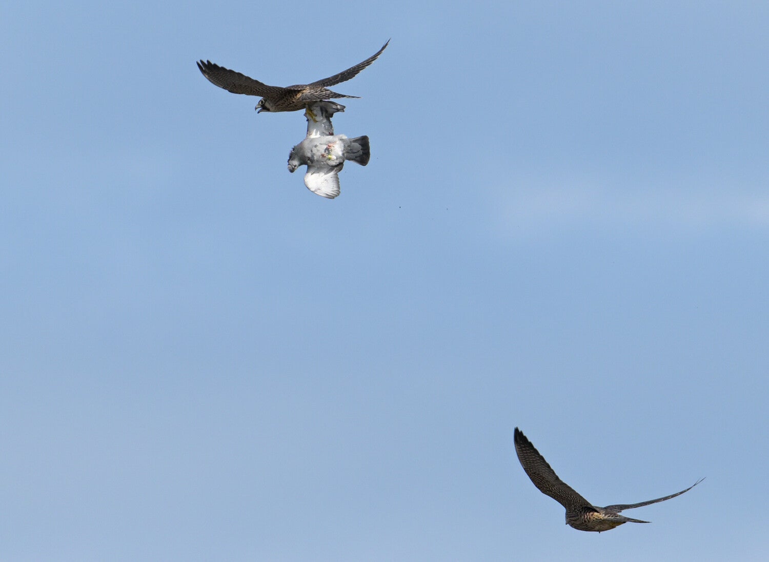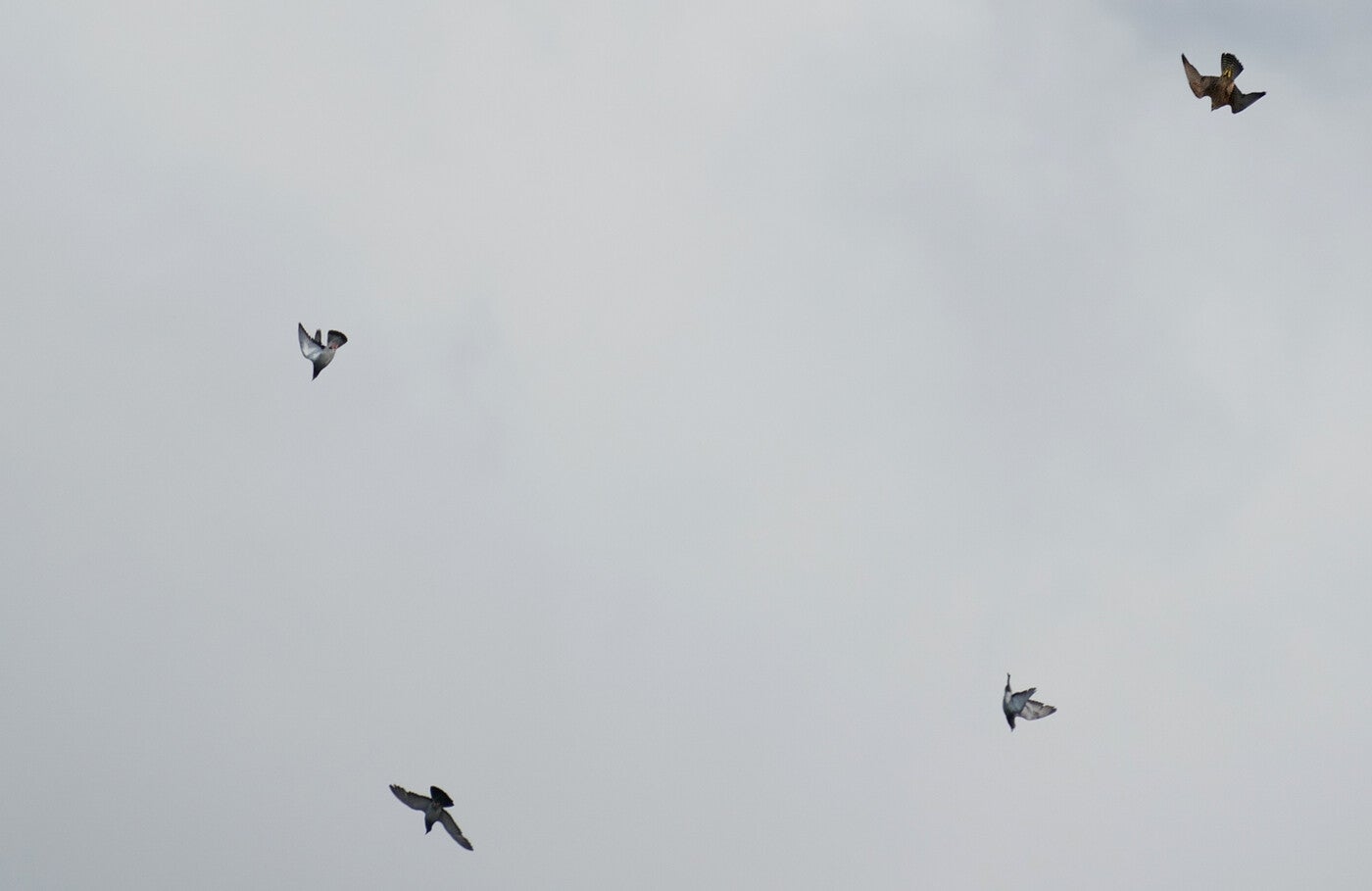 Een groep van 3 Duiven spat uit elkaar....Falco betreft steeds de bovenste Vogel :