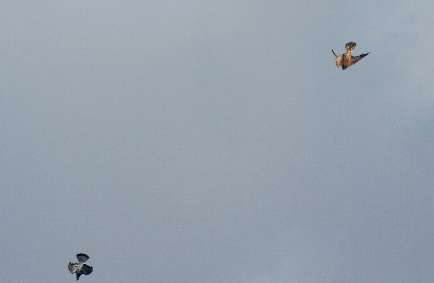 Rond 8.00 uur sta ik bij de Gevangenis en er is al snel een prooioverdracht te zien op grote afstand boven de Harstenhoek :