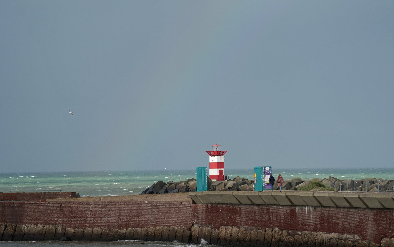 Het begint steeds harder te waaien met enorme windstoten, het hek op het Zuider-Havenhoofd gaat dicht :