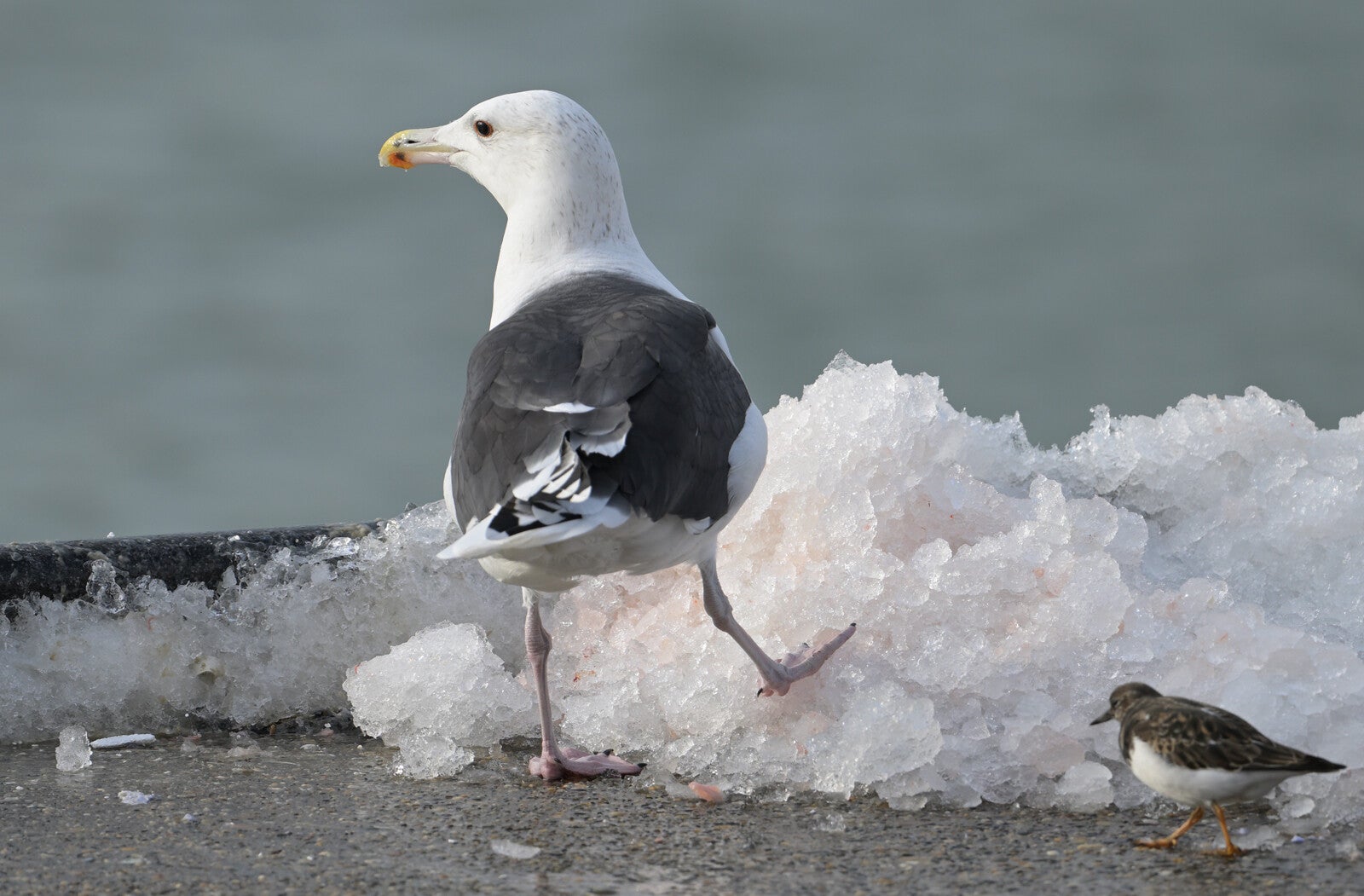 Een bonus in de vorm van een jeugdige Grote Mantelmeeuw...(Op de achtergrond de volwassen Vogel)