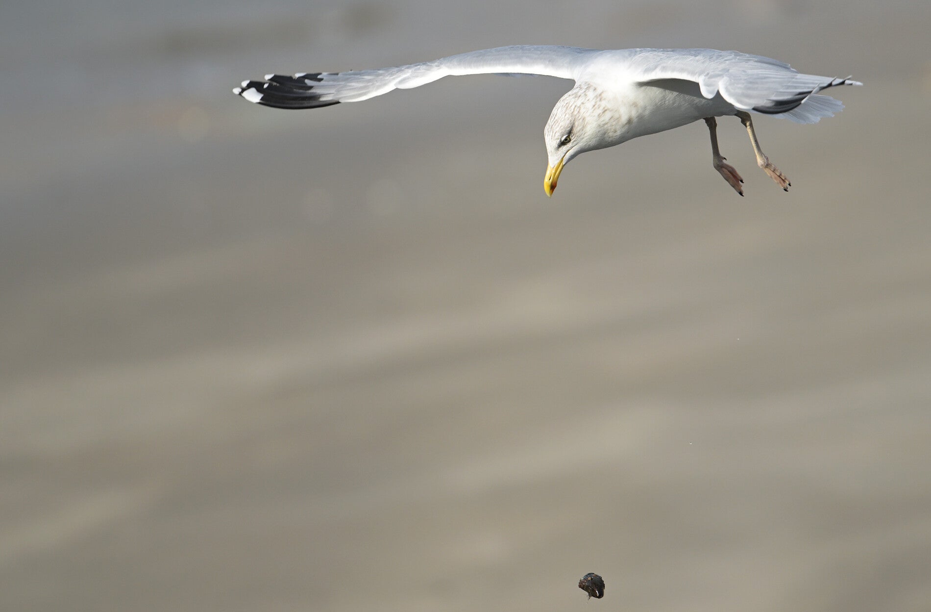 Ook deze Meeuw had even belangstelling voor het kadaver maar zag uiteindelijk in dat er geen beginnen aan was :