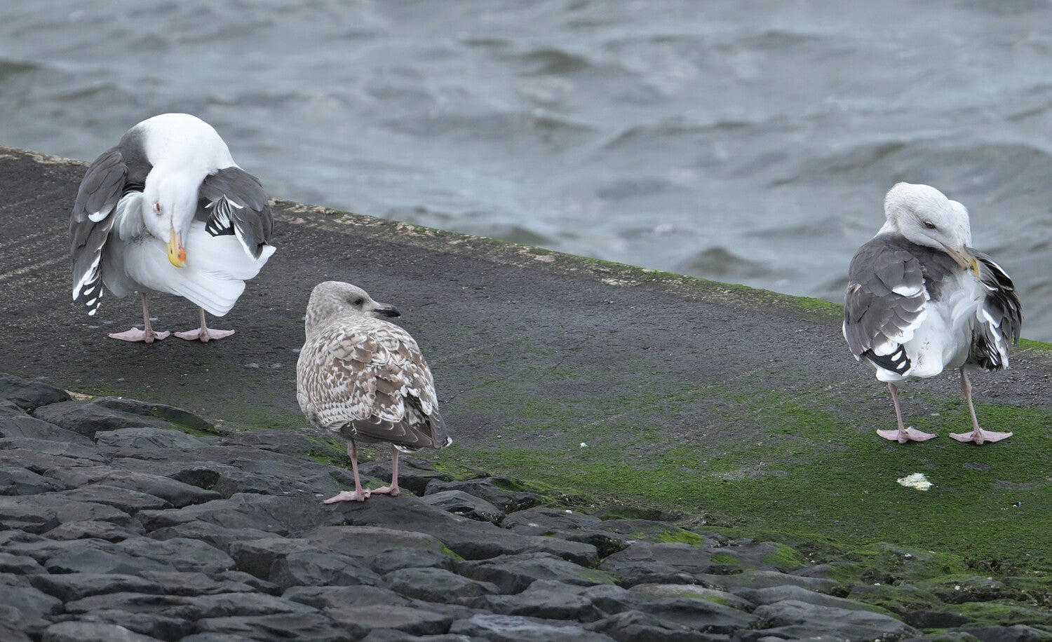 De Grote Mantel met op de voorgrond een volwassen en onvolwassen Zilvermeeuw :