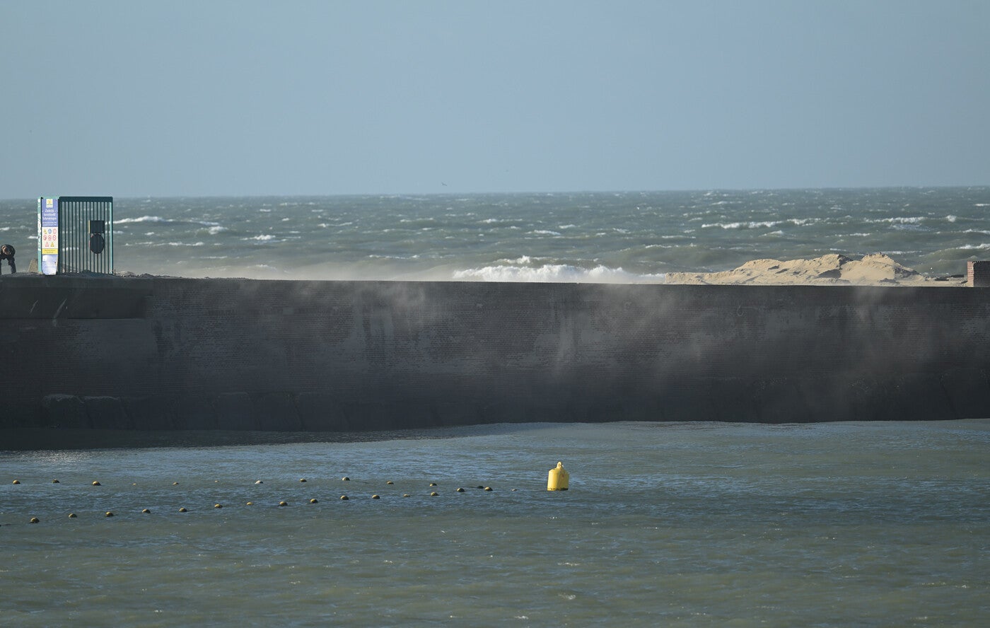 Let op het water dat bruin kleurt door het zand dankzij de door de storm omwoelde bodem :