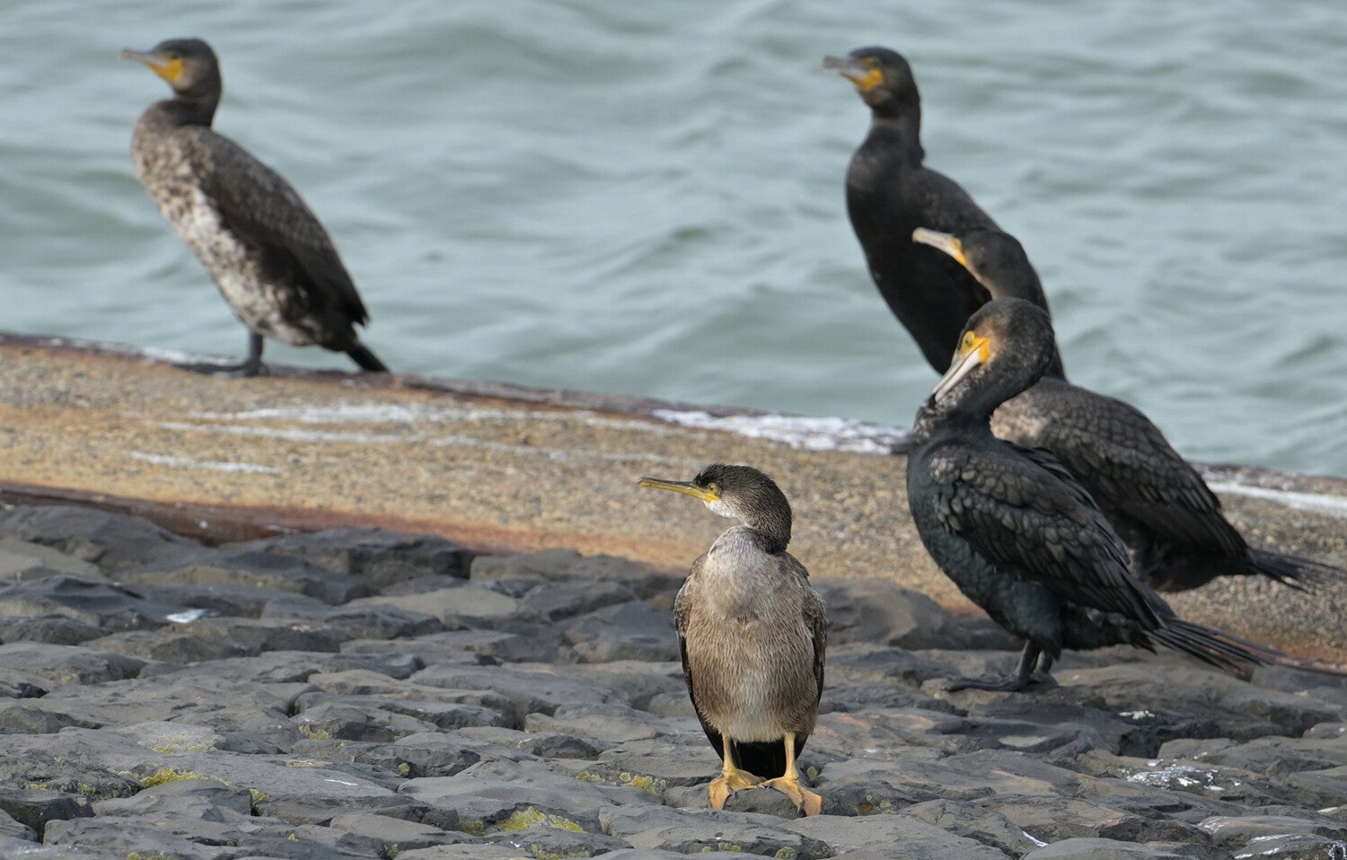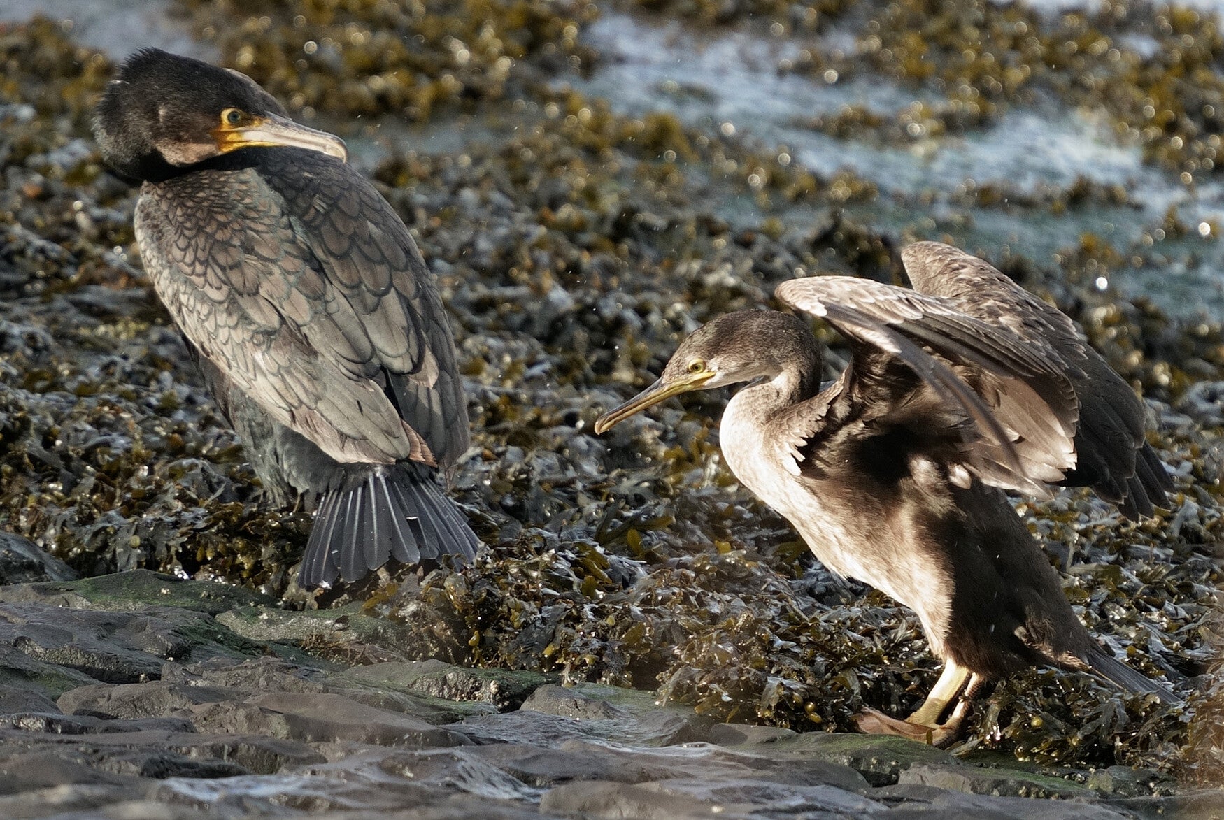 Rug aan rug met een gewone Aalscholver..(rechts)