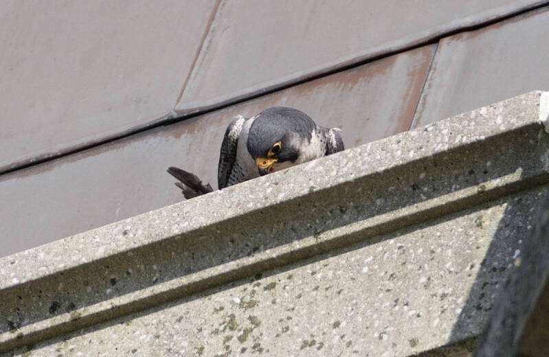 Ik moest lang wachten op vliegbewegingen van Pietje, maar hij toonde uiteindelijk wat fraaie baltsvluchten rondom de Toren.