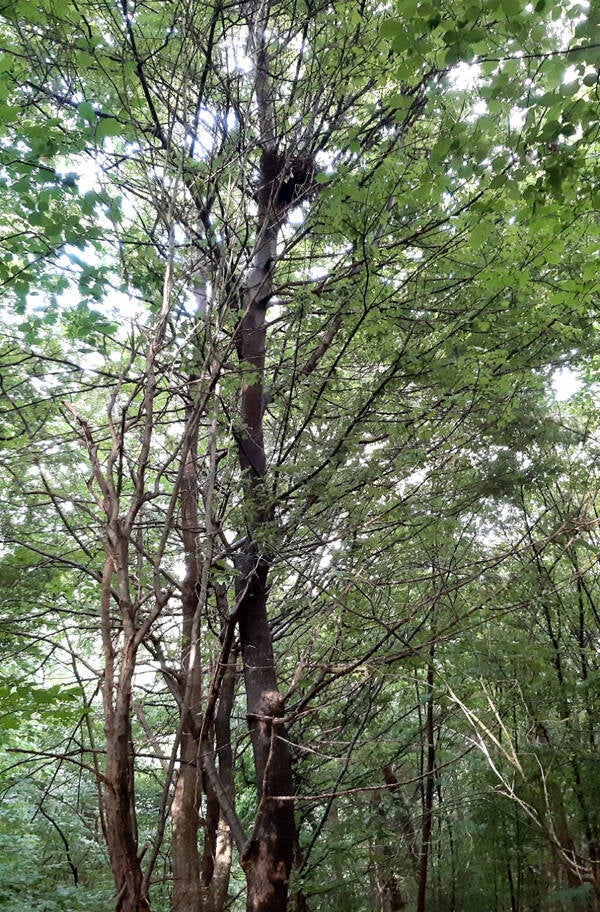 8 Juli : De jonge Sperwers in het Scheveningse Bos laten zich horen maar niet zien....Doel was echter het vinden van het oude nest.