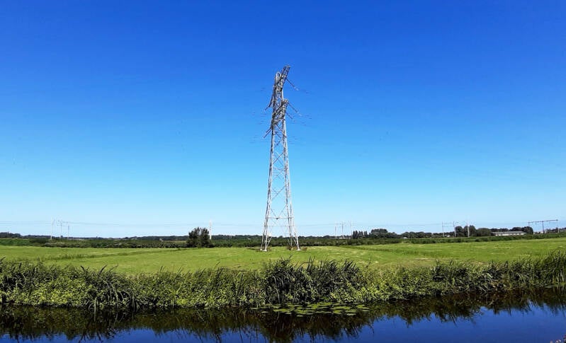 -Dit is de mast in de Volkstuinen boven de geboorde tunnel die zo'n 2 km onder Voorschoten en de Vliet loopt.
