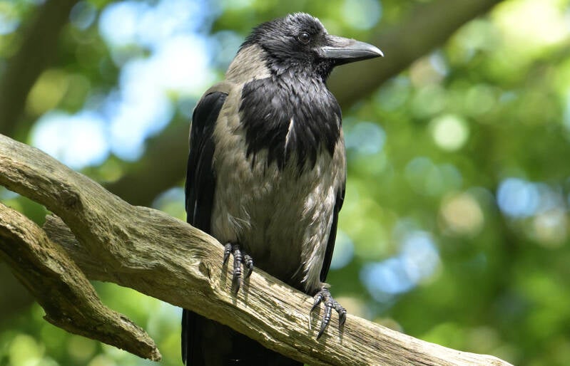 De bruine iris hebben ze gemeen met de Zwarte Kraai :