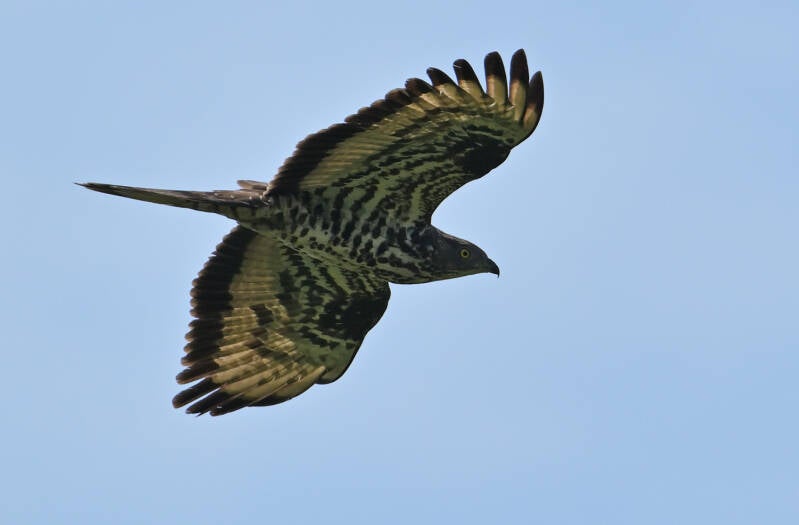 Ik mag hem zoals gewoonlijk zonder probleem volgen als hij speurend van tak tot tak vliegt..: