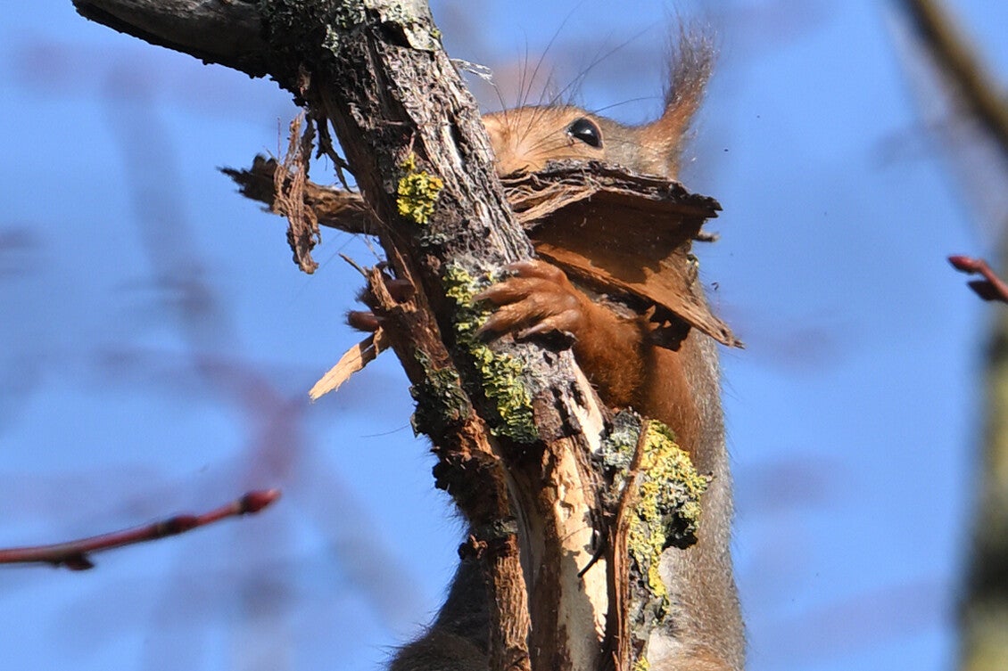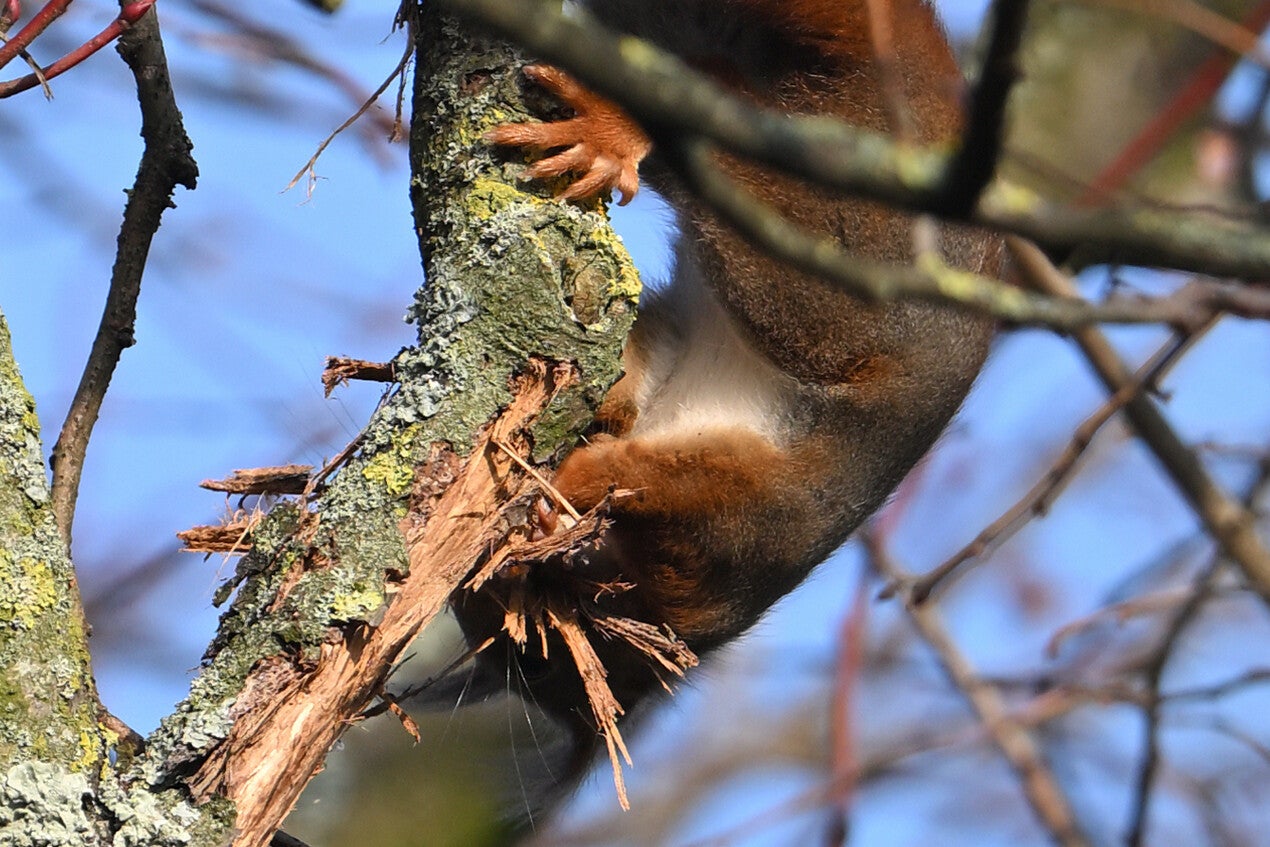 25 Januari : Op deze bitterkoude dag geen spoor van Buizerds te bekennen maar wel een zeldzame tref met een Eekhoorn die materiaal