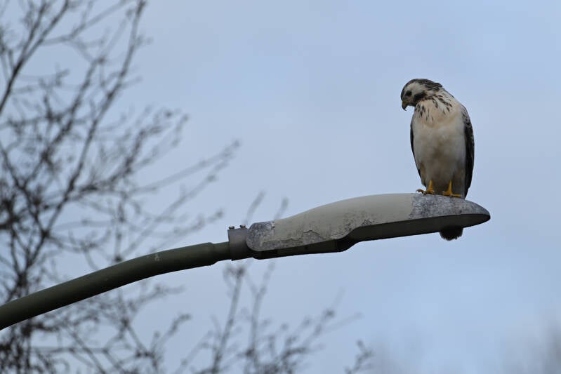 Vaste buurman Buizerd op een lichtmast :