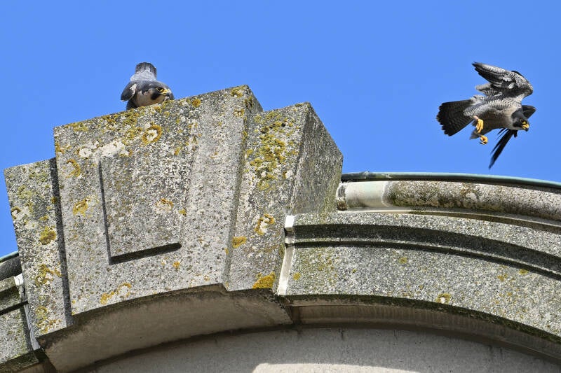 Vlakbij is het Vredespaleis en daar hangt al jarenlang zonder succes een Slechtvalkkast in de erker van een balkon.