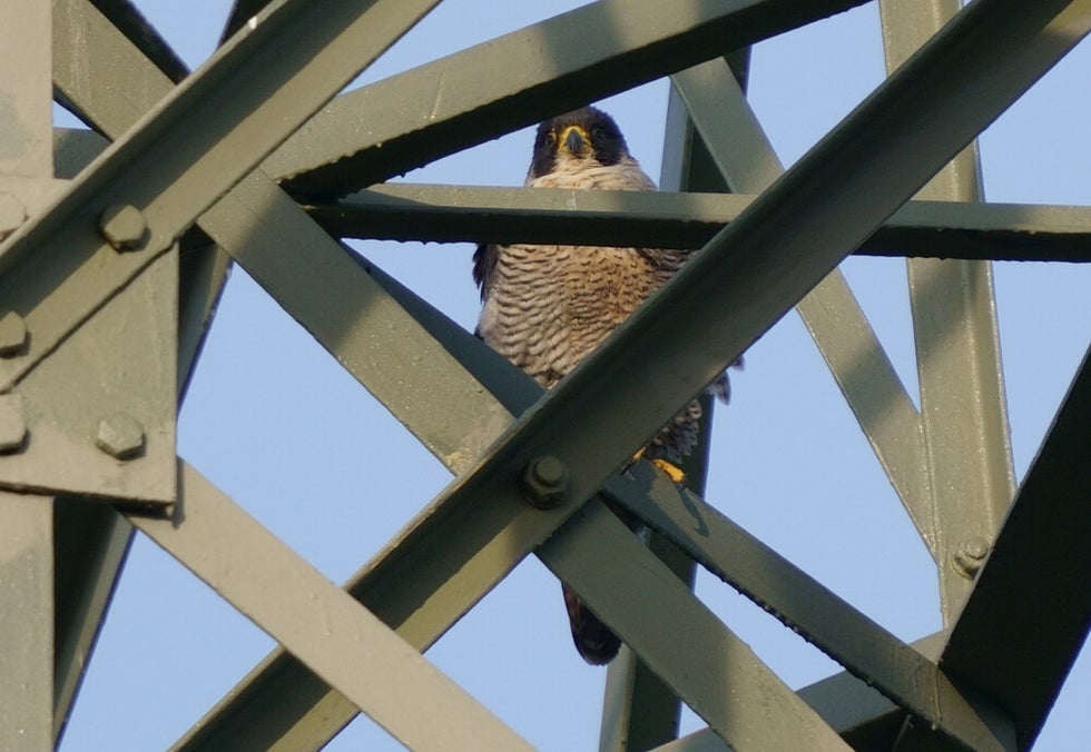 Deze Valk weigerde langdurig haar ringen te laten zien en daarbij zit ze ook nog eens op een zeer lastige stek om te fotograferen..: