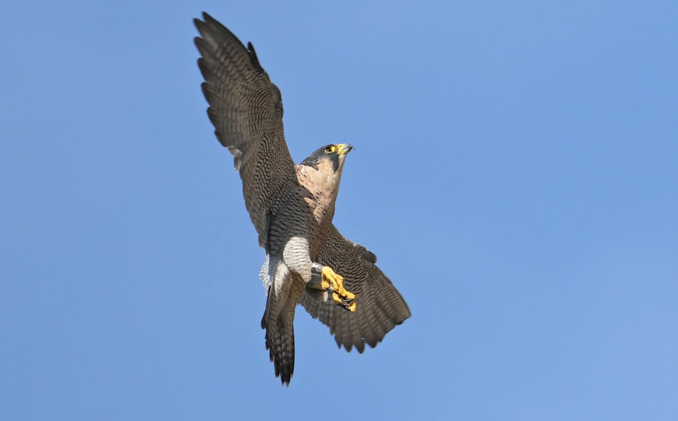 -Dit is de kleinste buit die ik ooit door een vrouwtje Slechtvalk heb zien binnenbrengen