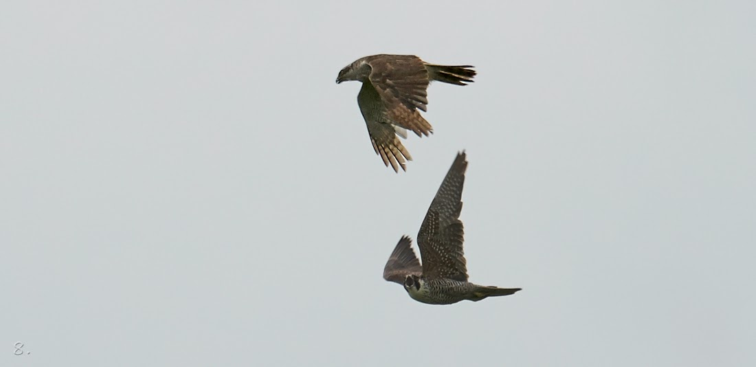 De Slechtvalk verdwijnt uit zicht met de Havik op de hielen..: