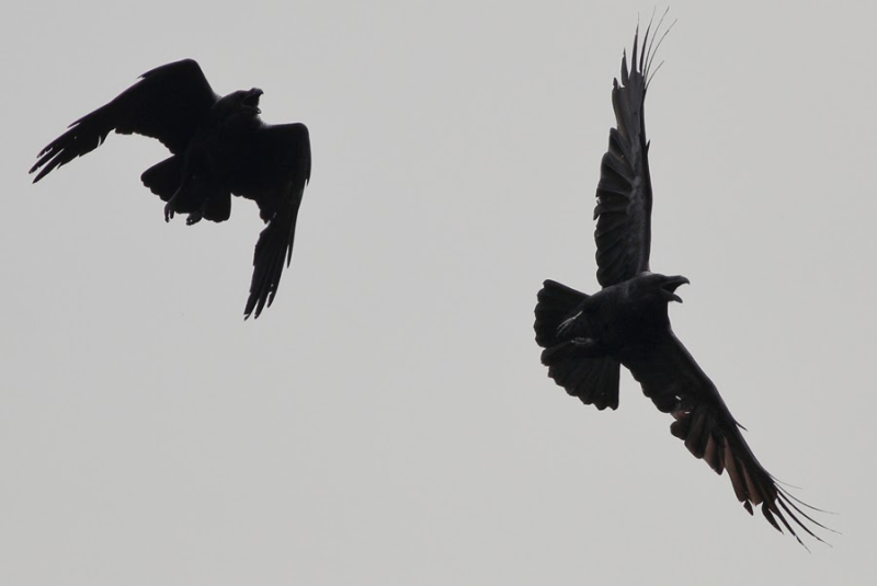 Alleen bij een laag langs vliegende Raaf en onder gunstige lichtomstandigheden is de schubvorming mooi te zien :