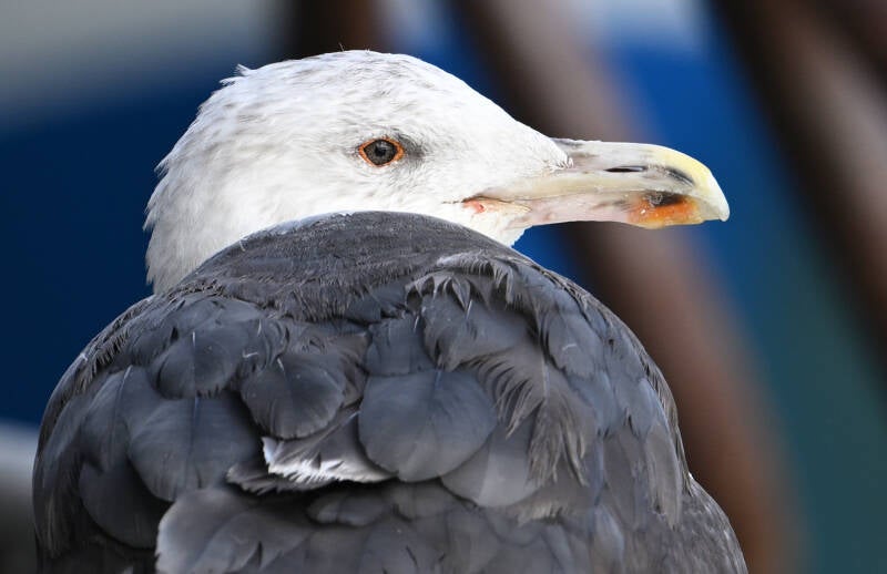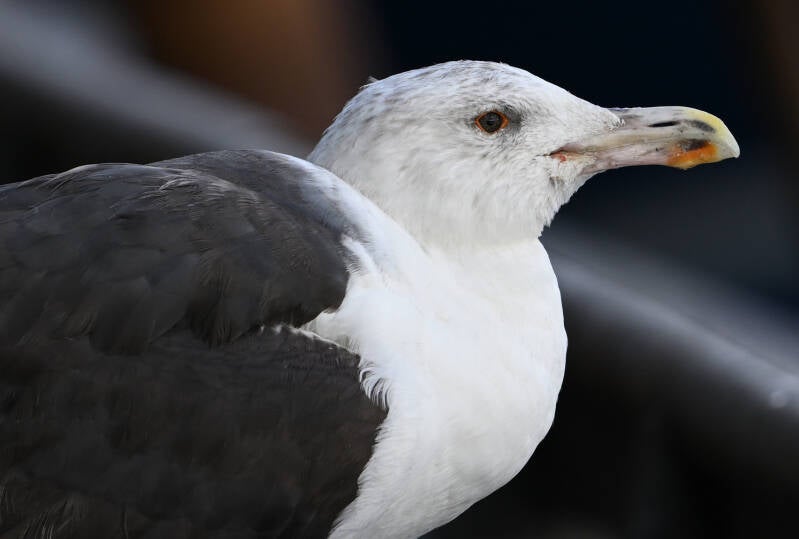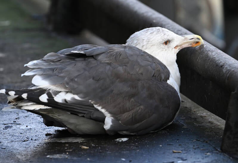 Grote Mantelmeeuw en jeugdige Zilvermeeuw :