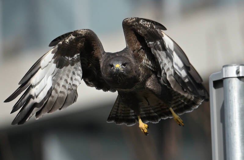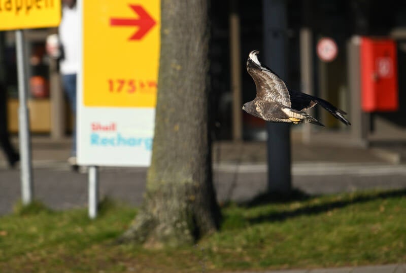 Buizerds zijn regelmatig slachtoffer van aanrijdingen, maar deze Stadsvogel is op de hoogte van alle verkeersregels :