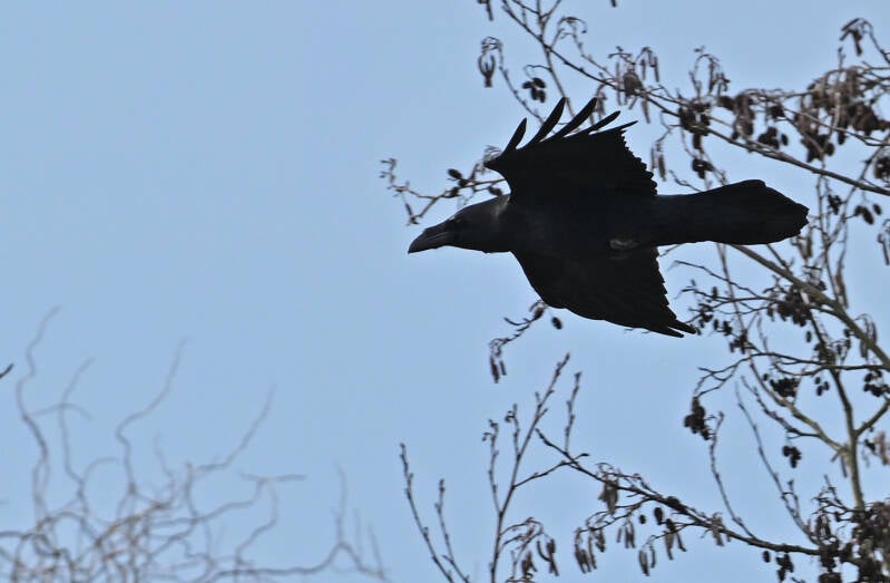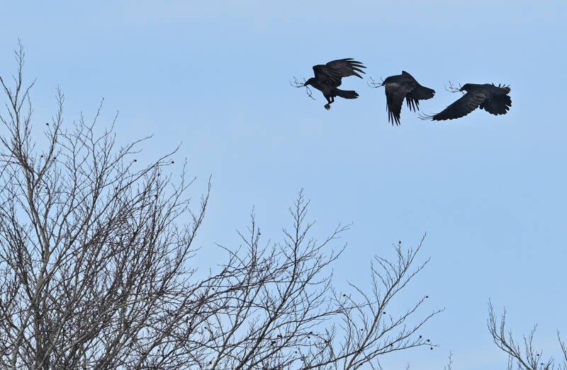 Tot mijn verbazing zetten de Raven de landing in waarbij er een paar Kraaien op de vlucht slaan..